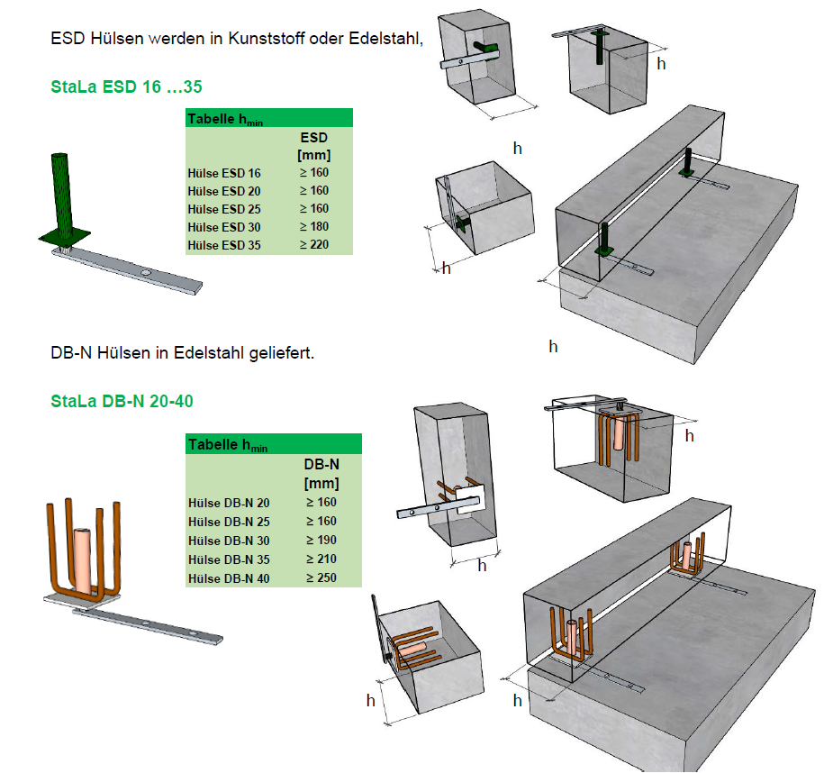 Der Laschendorn StaLa ist ein ETA-zugelassenes Verbindungssystem zur sicheren Verankerung von Stahlbetonfertigteilen wie Stützen, Massiv- und Sandwichwänden auf Beton- oder Stahlbauteilen.